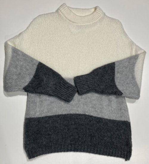 Maglioncino a collo alto, con fantasia a righe. Morbido tessuto e vestibilità molto comoda